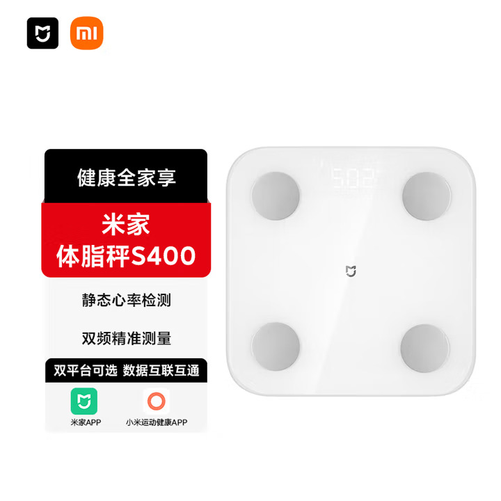 米家(MIJIA)小米智能体脂秤S400 白色 双接家用电子秤体重秤高精准25项身体数据平衡测试 塑形减脂 体重管理